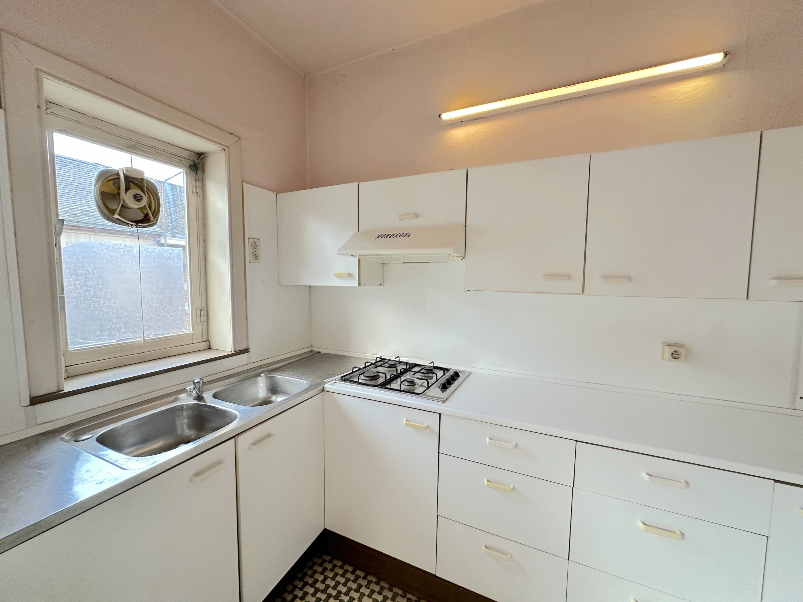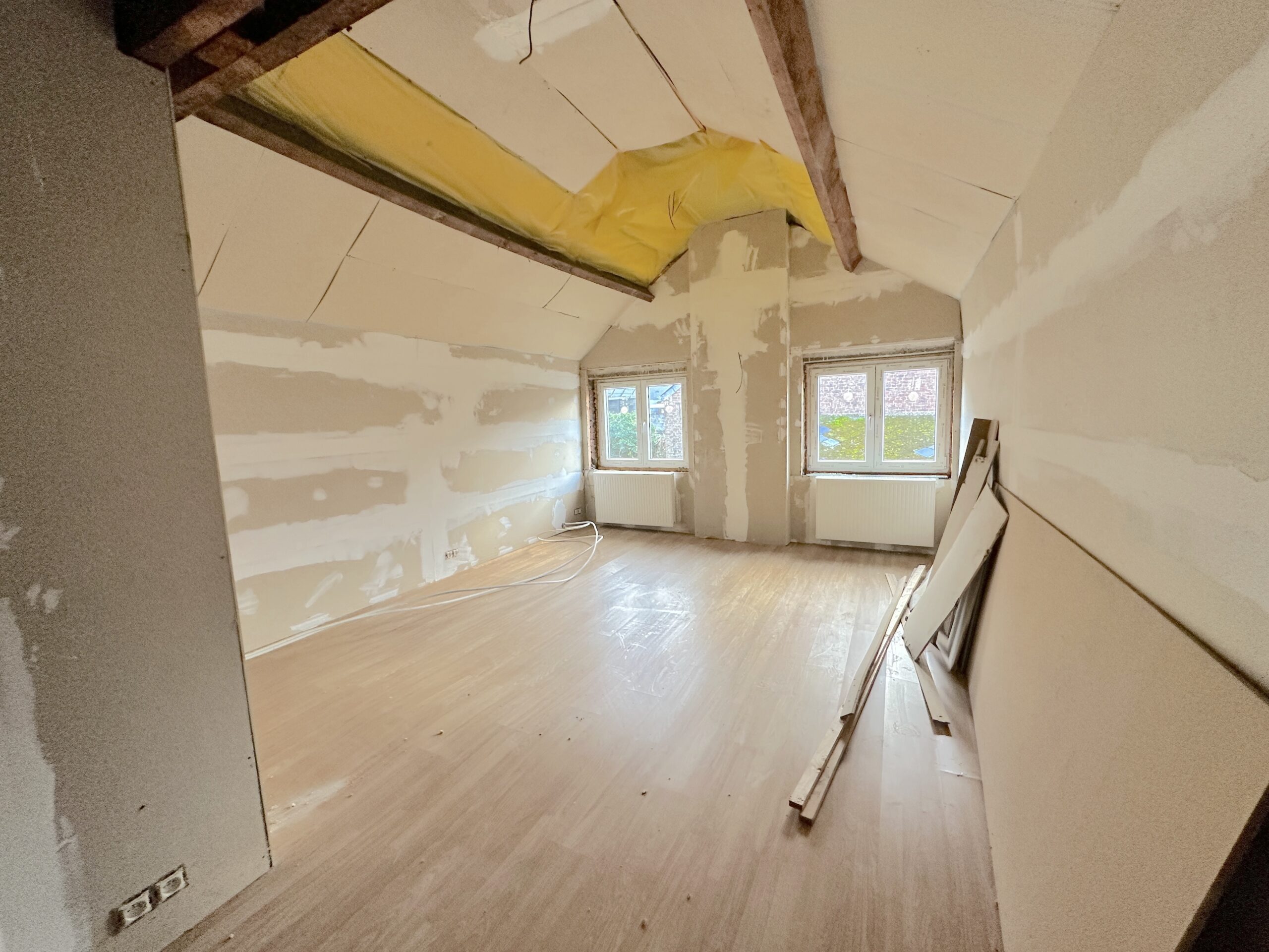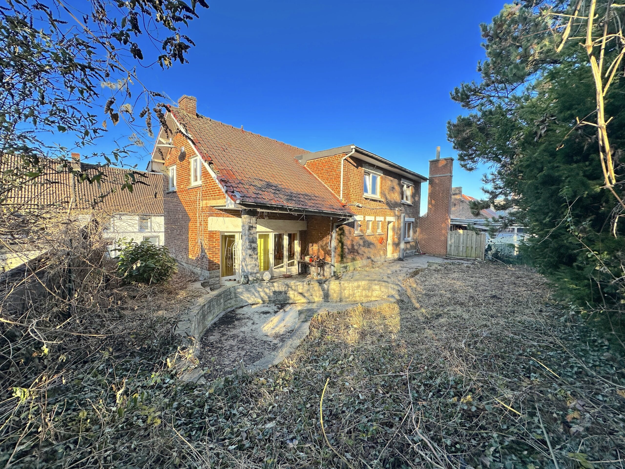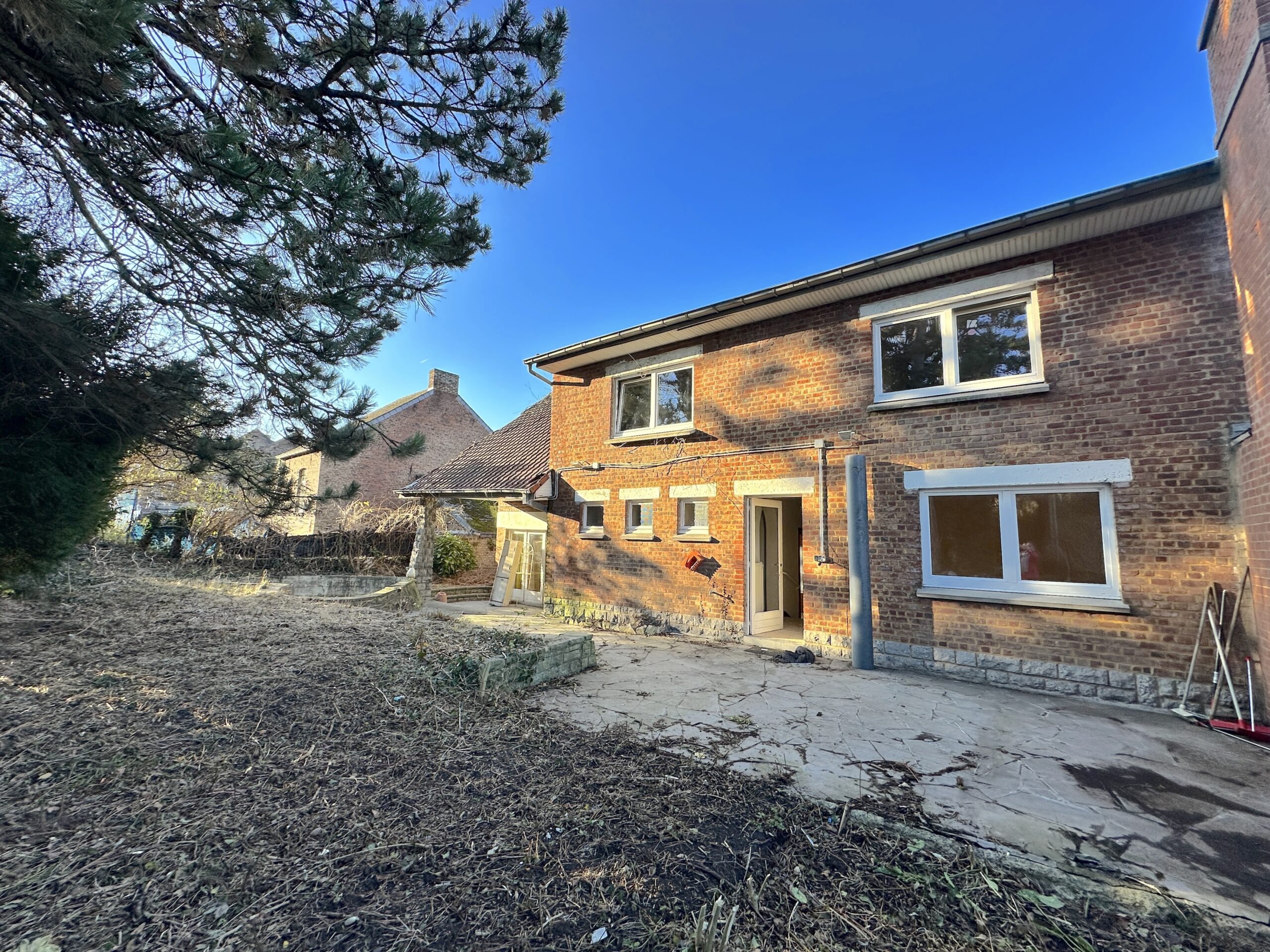 Chauffage central gaz, châssis PVC et bois, PEB E372kWh/m2.an, électricité à refaire, toiture principale à refaire.