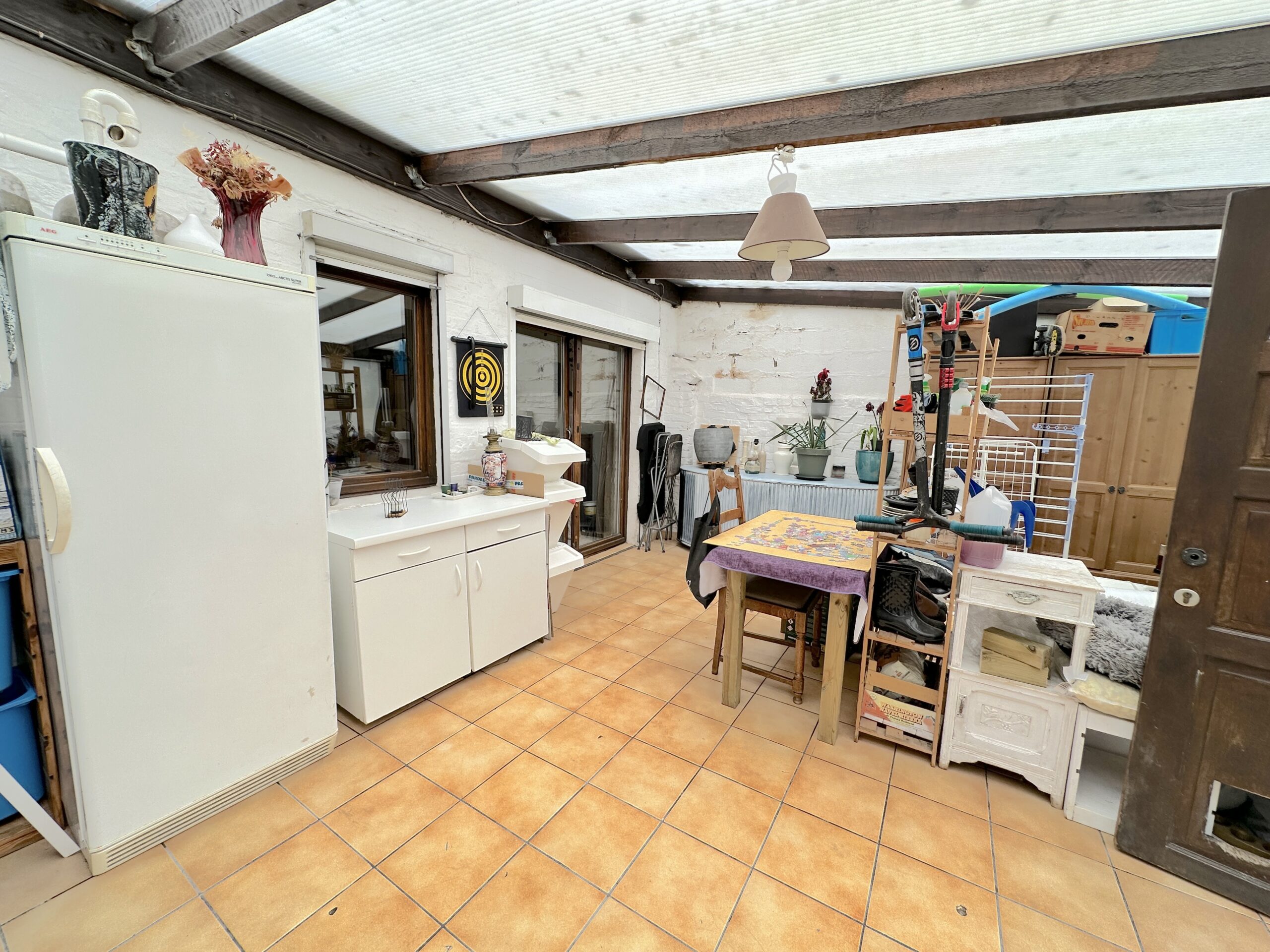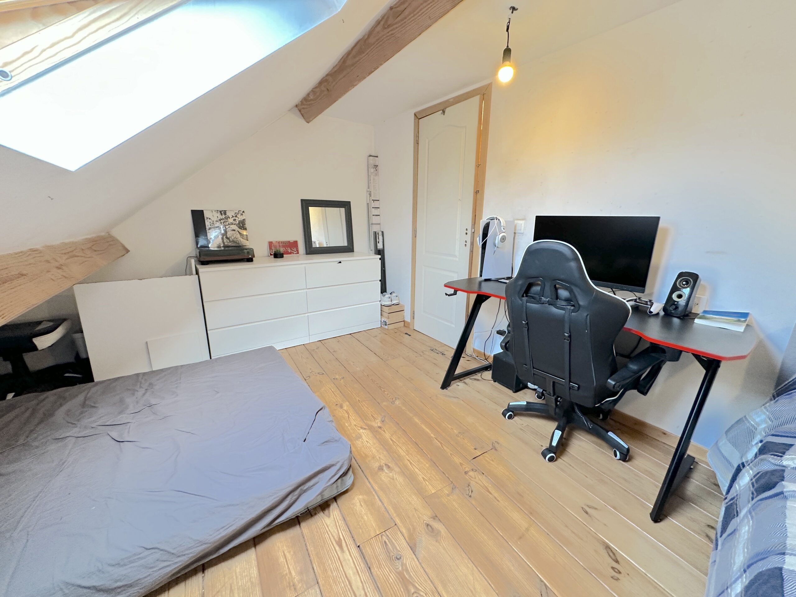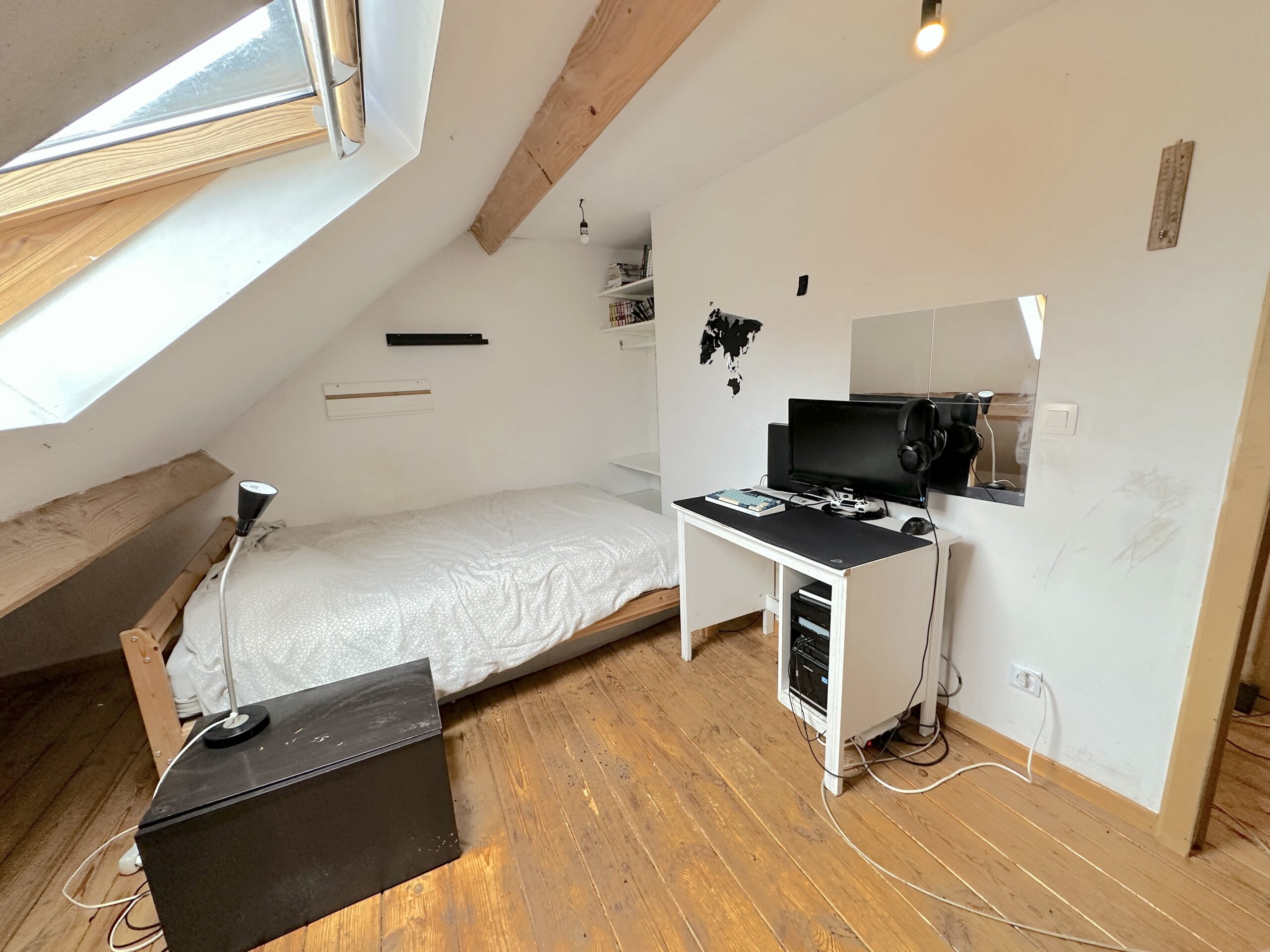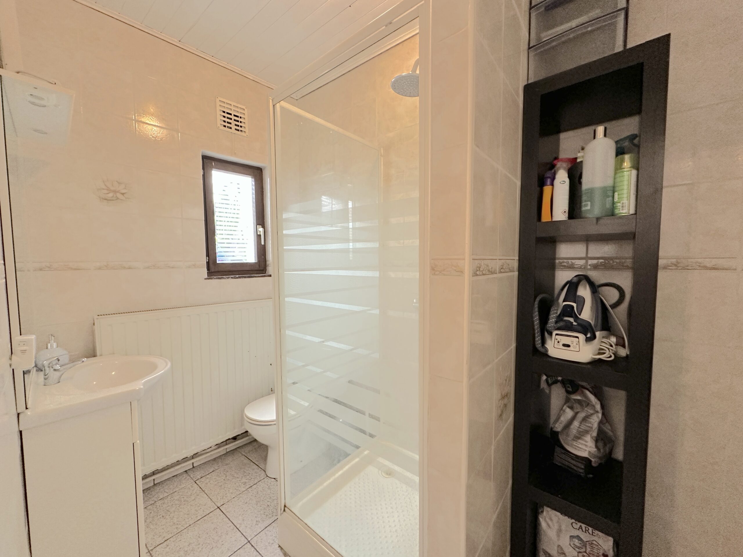 Châssis PVC double V+ volets, électricité à corriger, toiture récente (2014), chauffage central gaz (chaudière à condensation (2019), PEB C (en cours de renouvellement).